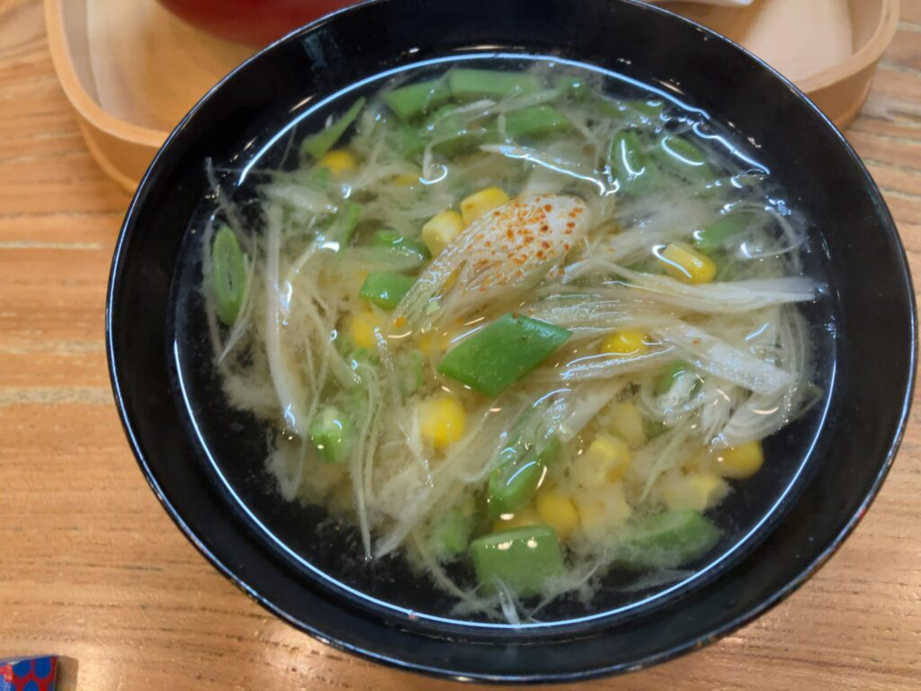 津軽エリア岩木山のとうもろこしとインゲン豆と茗荷のお吸い物