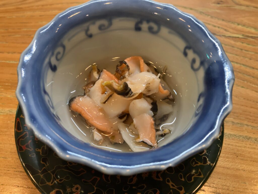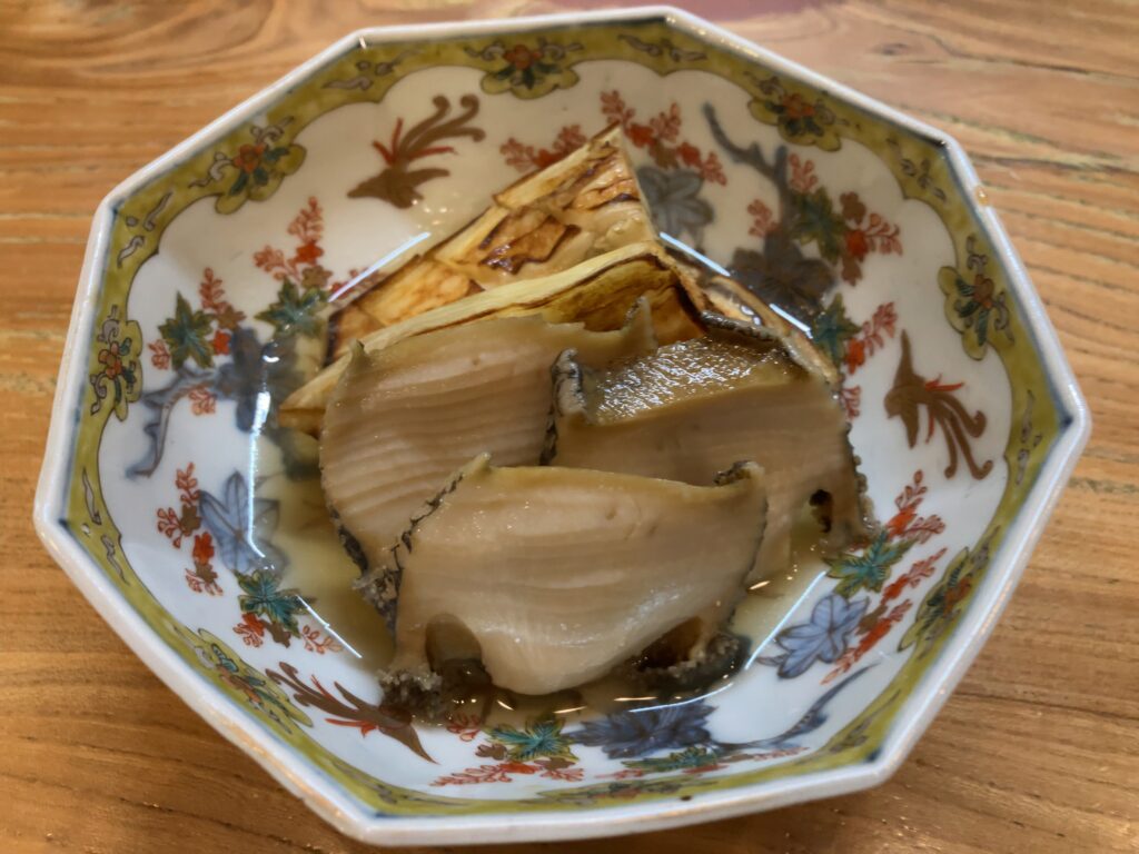 身が締まつたアワビにジューシーな白ナスが美味しかった。