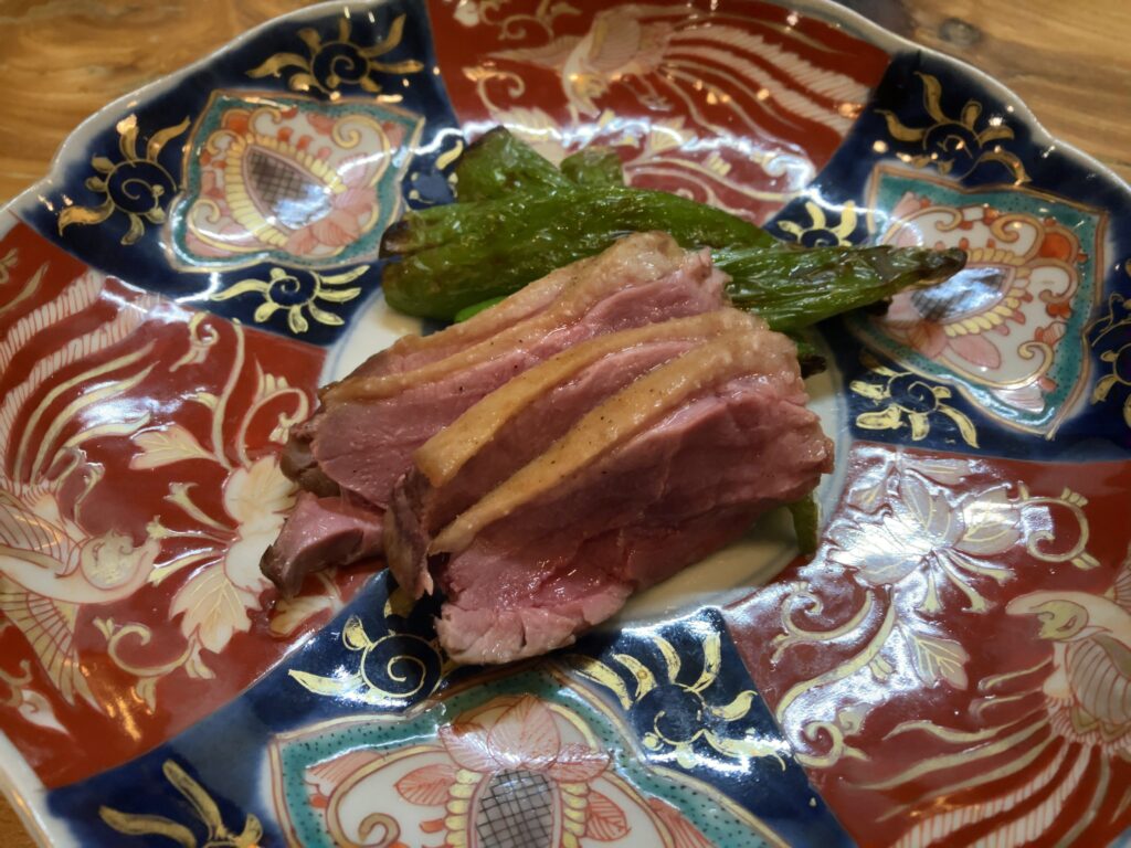 津軽半島の鴨肉に自家栽培の無農薬の甘トウガラシ