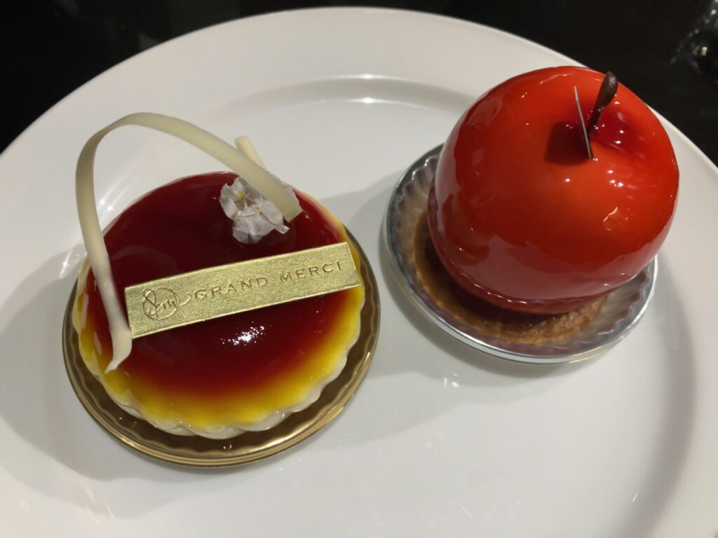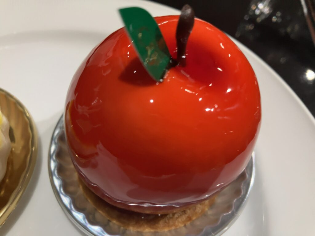 ホワイトチョコムースにアップルタタン、サクサクのスポンジにサブレという構成。