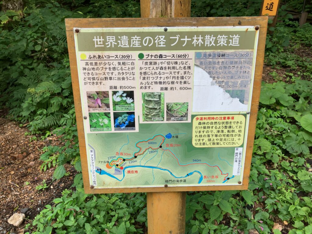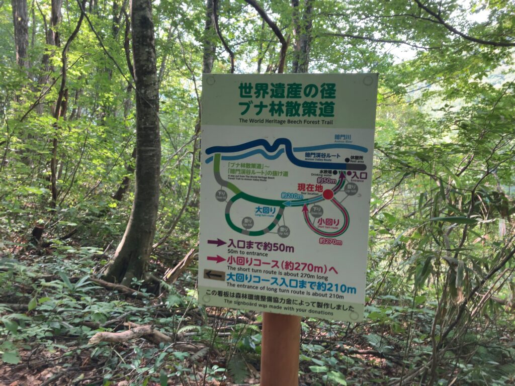 アクアグリーンビレッジのANMONに車を停めて世界遺産の径であるブナ林散策道へ向かいます。