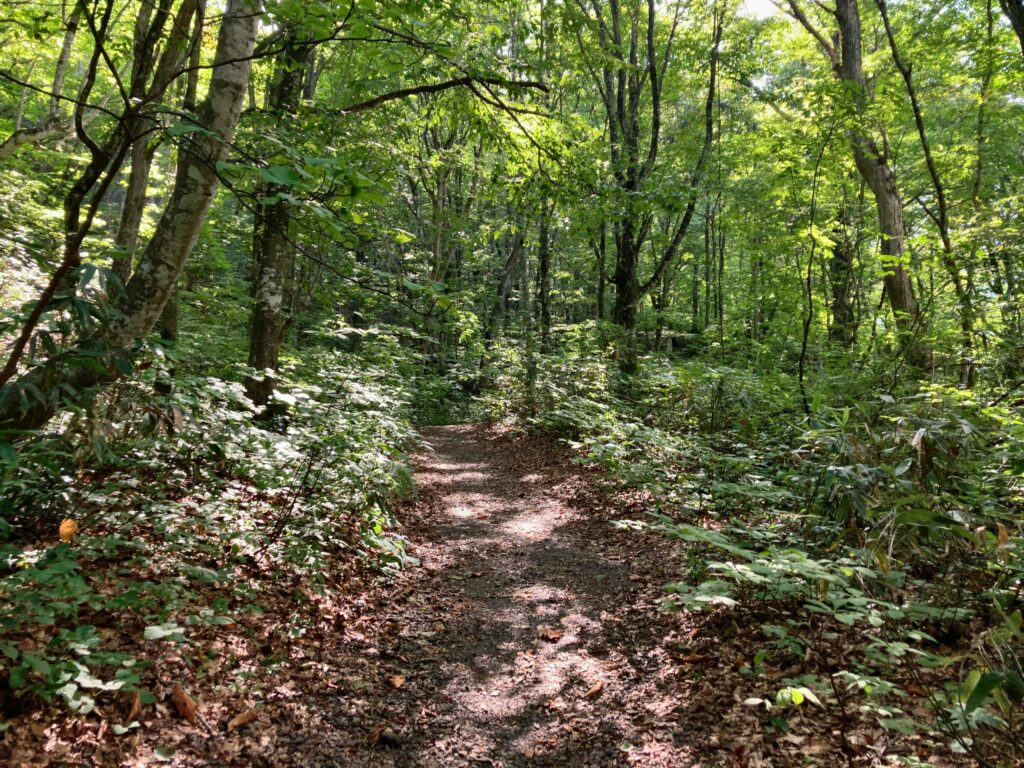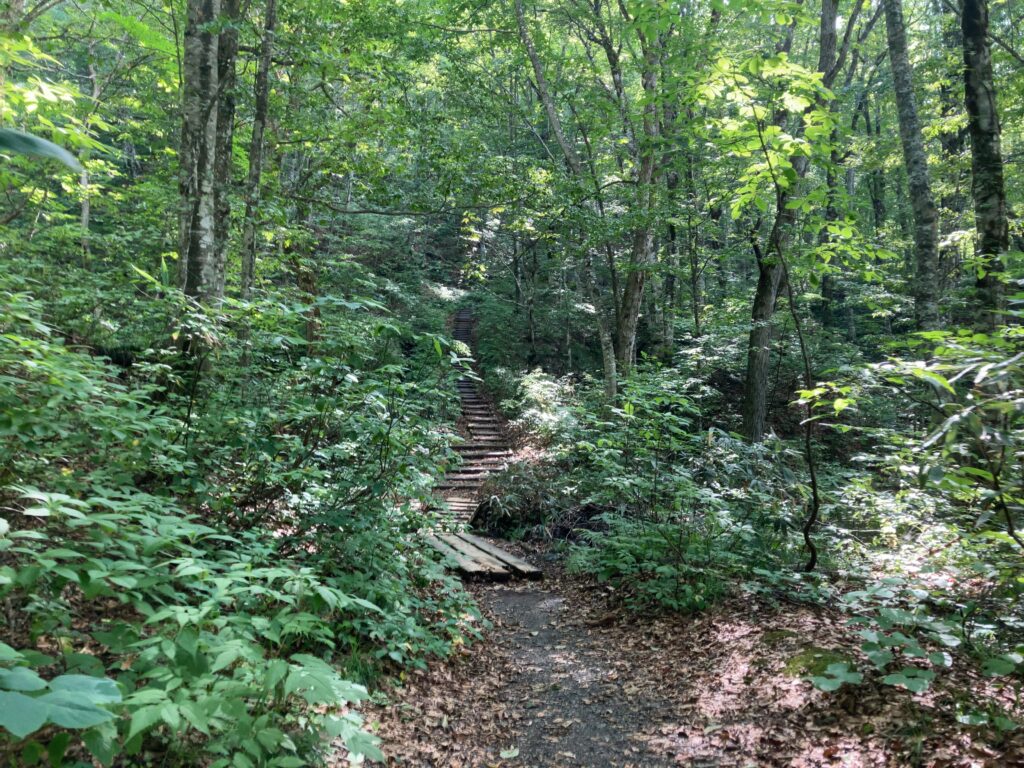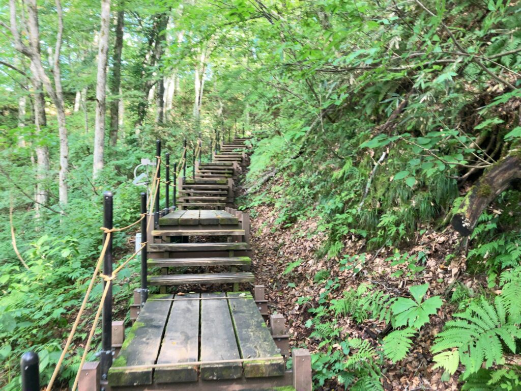 森の音に耳を澄ましながら木漏れ日の差すブナ林囲まれた散策道を歩きなが自然の生命力を感じます。
